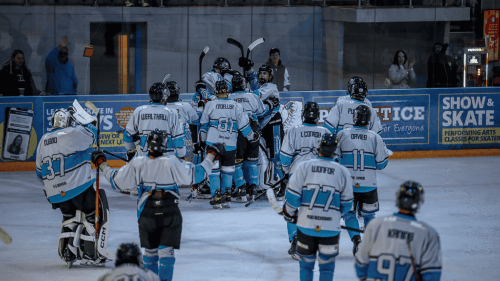Thunder returned the ice flying. Three early chances could easily have tied the game up, and Slough struggled to get through the neutral zone to relieve the pressure, which finally told on 43:26 when Kanins was able to take advantage of another powerplay opportunity to level the game with a smart shot from the circle into the top far corner of the net. An abuse of official penalty called after the goal provided Thunder a huge opportunity to take the lead, but again McGibbon stood on his head, making one save in particular that left everybody in the rink wondering how on earth the puck hadn’t crossed the line. As the powerplay finished, Thunder were able to complete the comeback, catching Spitfires on a chance, Kanins won the race to a puck behind the goal, finding Lewis Conroy in the slot to put the home team in the lead for the first time on 47:37. This kicked Slough into gear, and after pushing hard for the next few minutes, the scores were tied once again when Scott Anda snuck the puck through Burton’s legs from a tight angle on 53:53. This, however, did not last long. From the following faceoff Kanins collected the puck on the half wall in his own zone, and beat 4 Slough players on the rush before again finishing smartly from the circle on his forehand, goal timed at 54:23. Slough did their best to rally once more, but were met with a calm and composed Thunder defence who stood firm to prevent the Spitfires from being able to generate any chance of real quality or threat in the remaining moments. The game was sealed on 58:50 when Kanins completed his hattrick with a smart finish around McGibbon’s far pad.